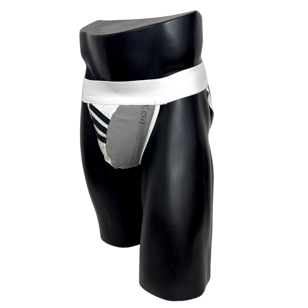 Our totally unique Adidas Jockstrap, handmade from an up-cycled Adidas tracksuit jacket. Besides the authentic fabric from the tracksuit, we finish this customised product with high premium quality elastic bands around the waist and on the side, as well as the pocket with the zipper closure on the side.