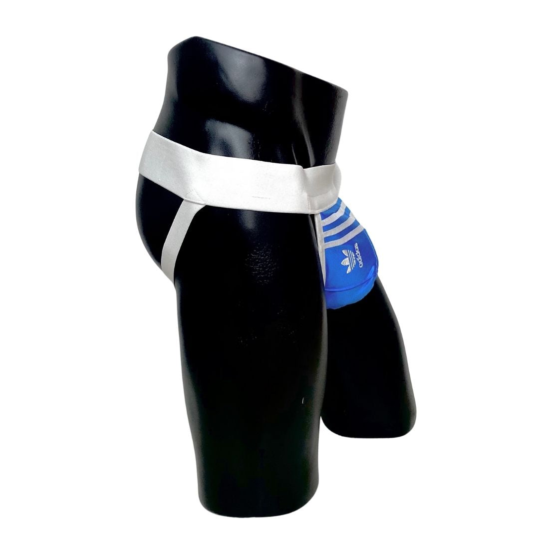Our totally unique Adidas Jockstrap, handmade from an up-cycled Adidas Chile 62 tracksuit. Besides the authentic fabric from the tracksuit, we finish this customised product with high premium quality elastic bands around the waist and on the side.