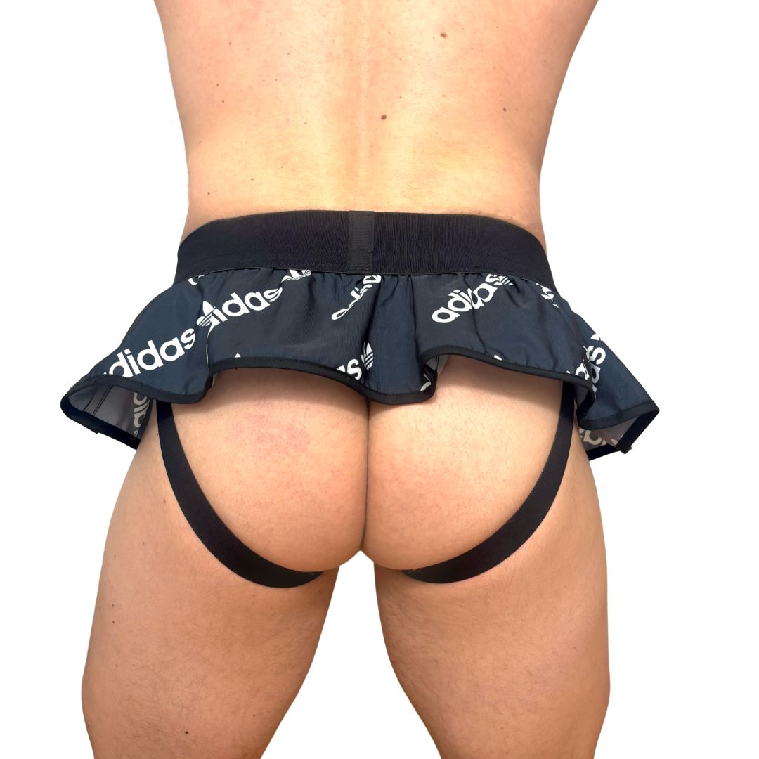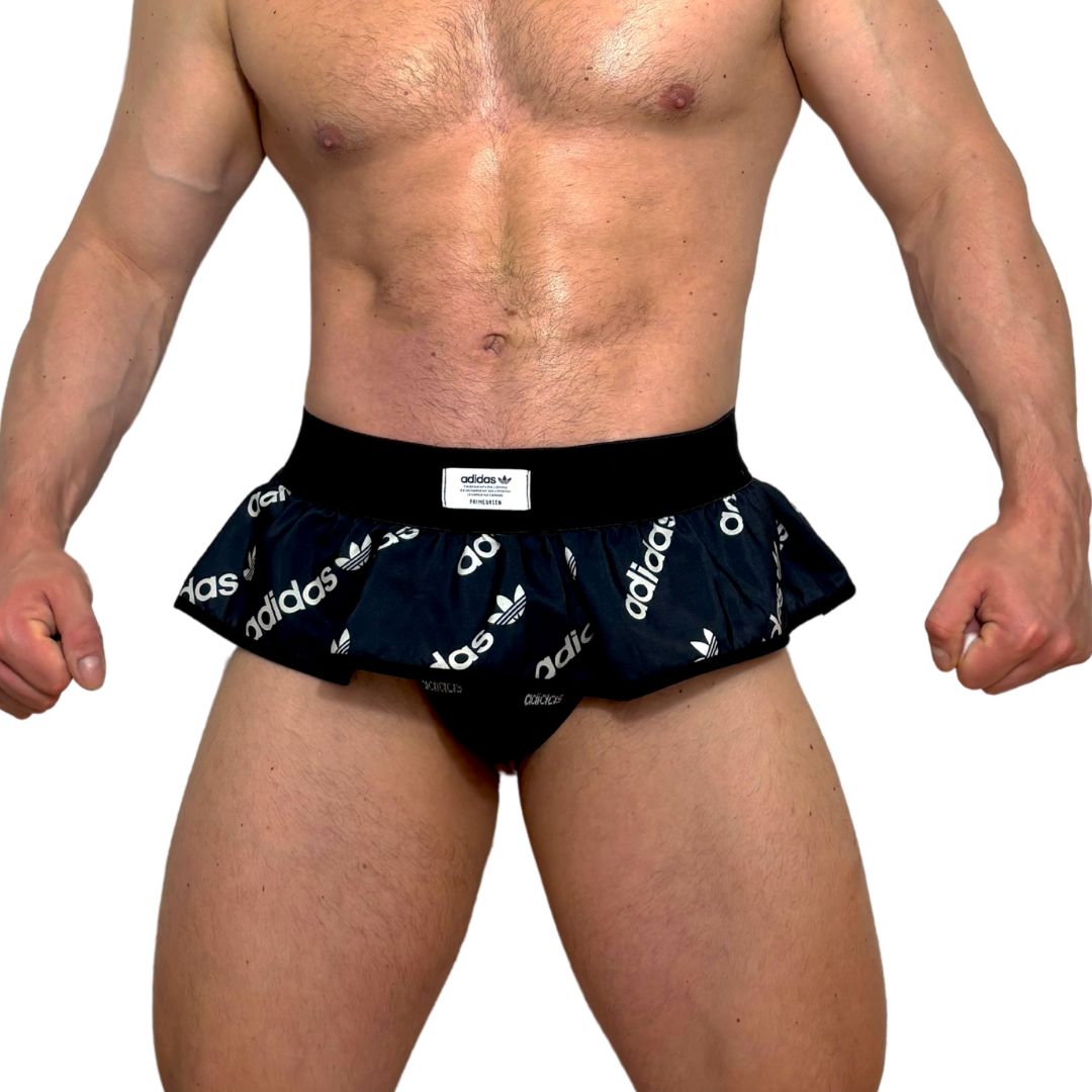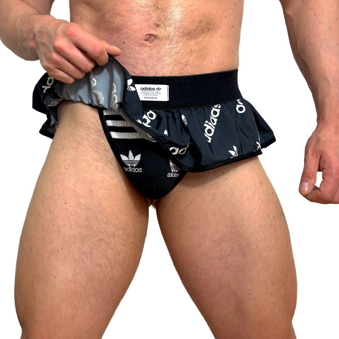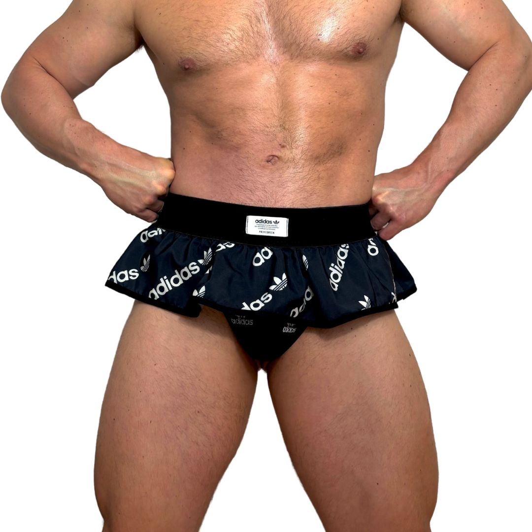 This unique Adidas Skirt Jock/Thong is made from the up-cycled Adidas Head Scarf.