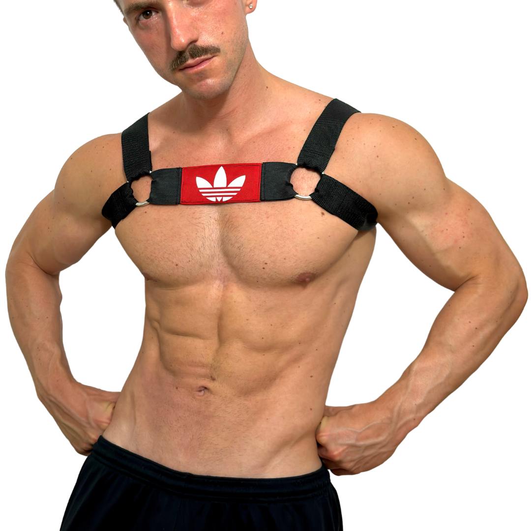 Our totally unique Adidas Originals Harness handmade from up-cycled Adidas waist bags. Besides the authentic material from the bags, we finish this customised product with high premium quality elastic bands and titanium rings which provide adaptability.