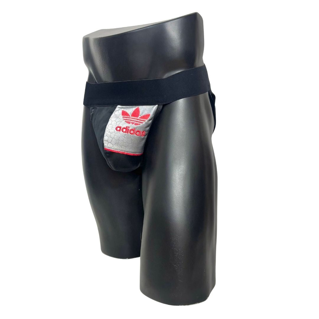 Our totally unique Adidas Jockstrap, handmade from an up-cycled original Adidas tracksuit. Besides the authentic fabric from the tracksuit, we finish this customised product with high premium quality elastic bands around the waist and on the side, as well as the pocket with the zipper closure on the side.