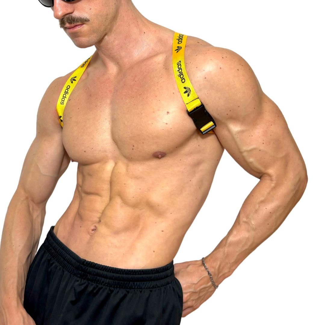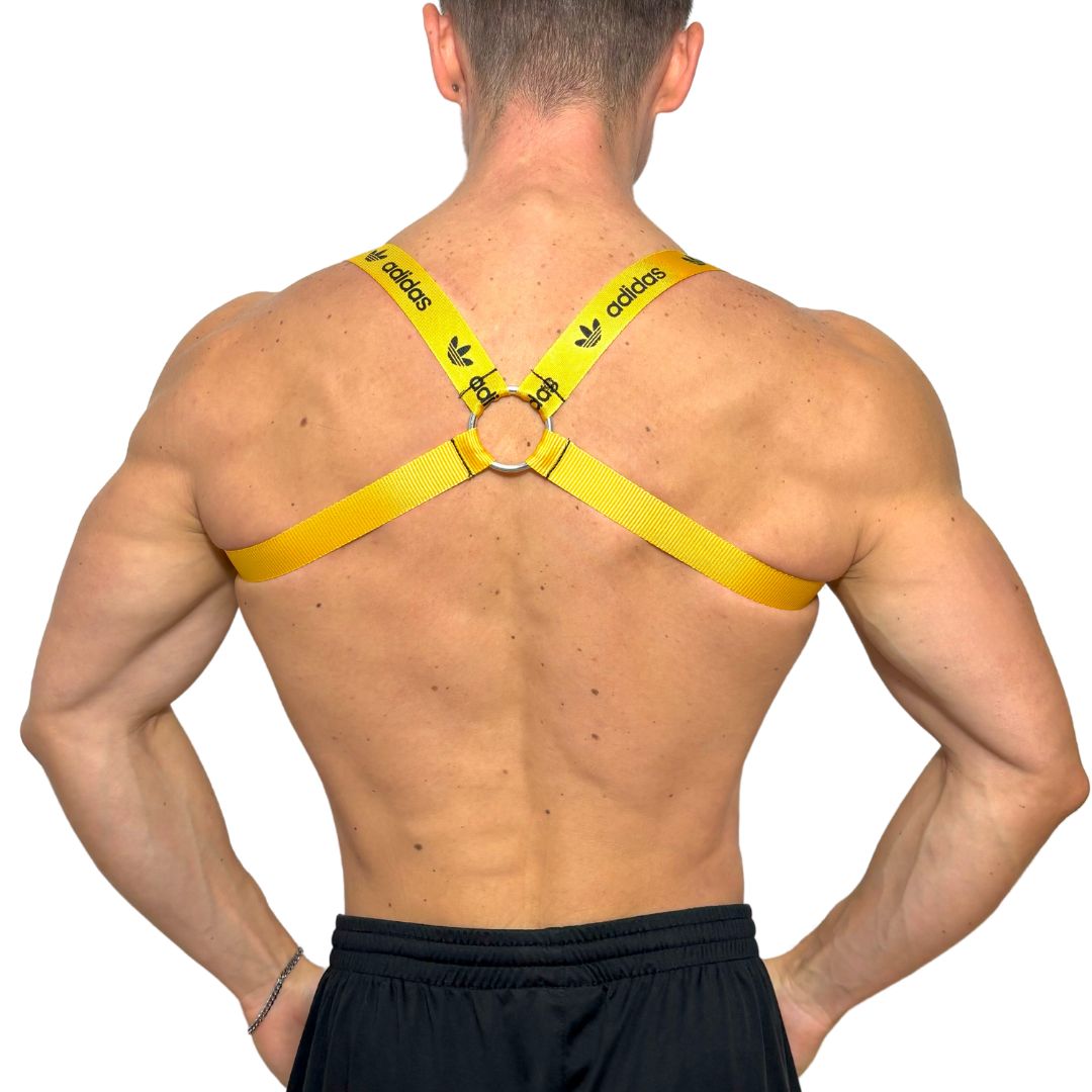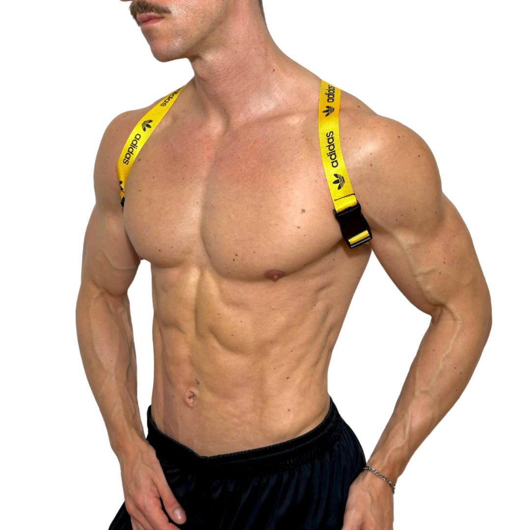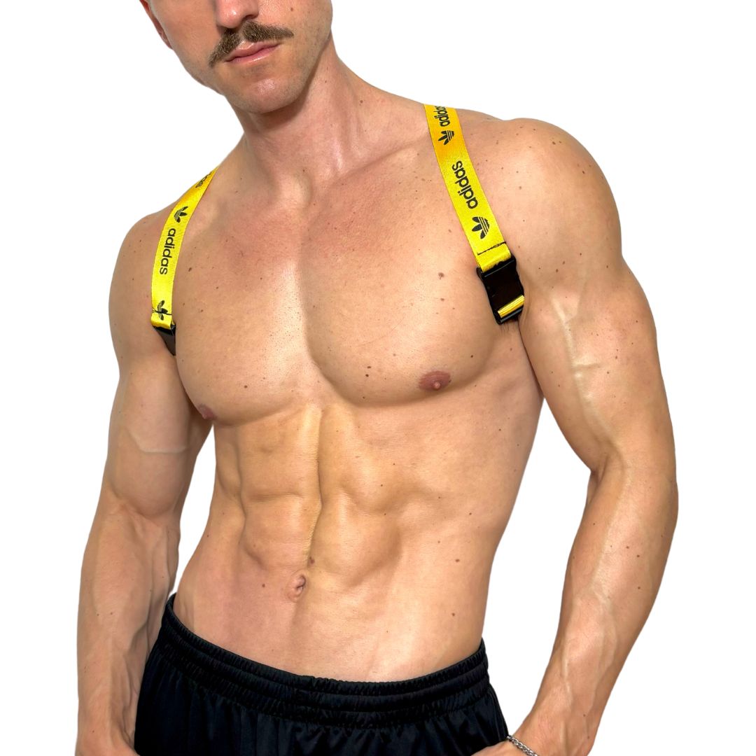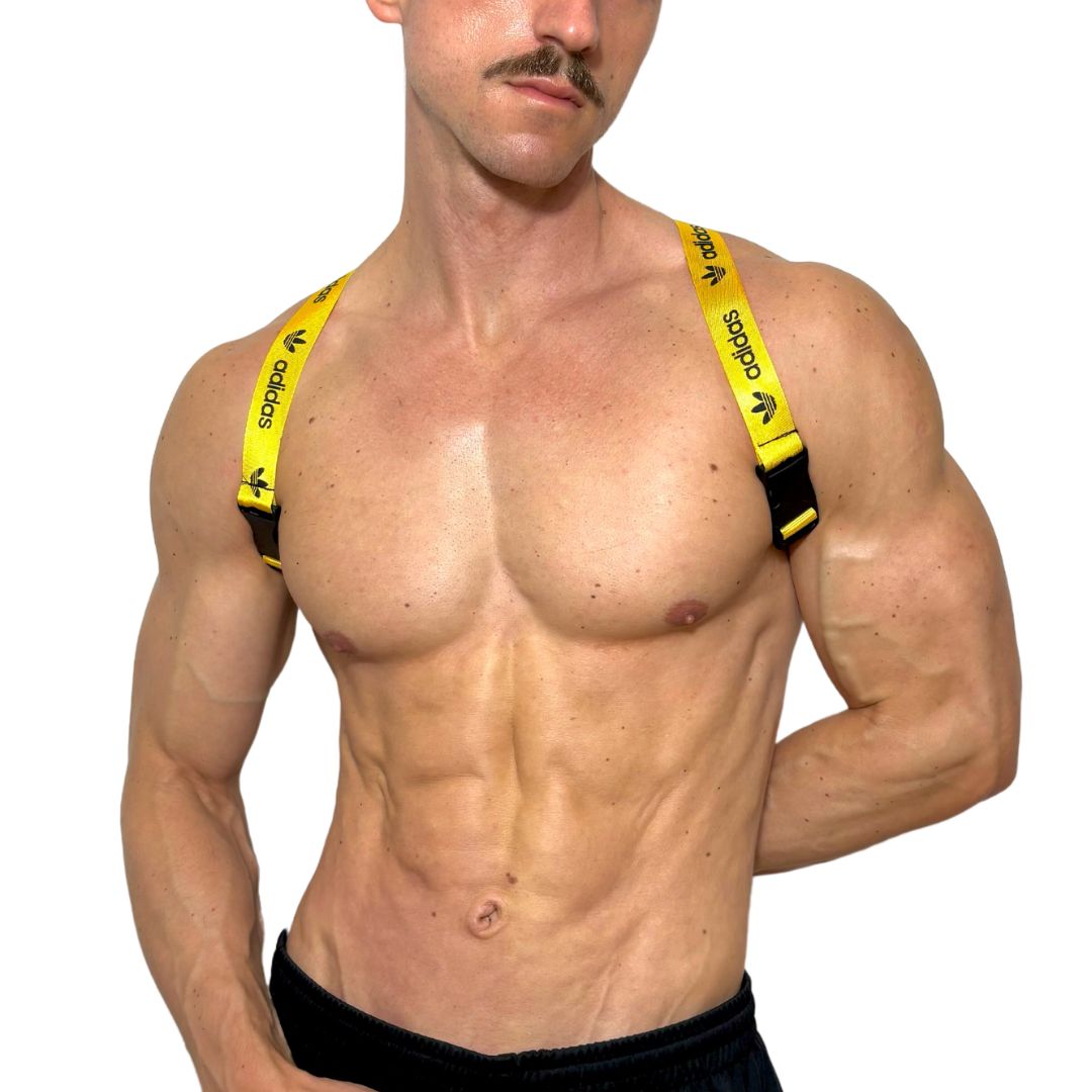 Our totally unique Adidas Originals Yellow Harness is handmade from up-cycled Adidas waist bags. Besides the authentic material from the bags, we finish this customised product with high premium quality elastic bend and titanium rings which provide adaptability.