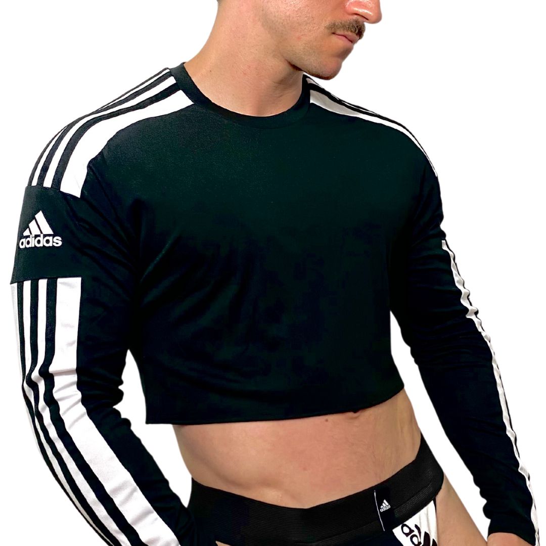 This sporty Adidas Crop Top is made from the up-cycled Adidas t-shirt in size M. More sizes are available.