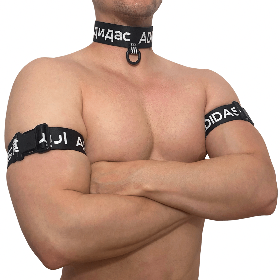 Our totally unique Adidas Sport Choker and Arm Bands Set handmade from up-cycled Adidas waist bags. Besides the authentic material from the bags, we finish this customised product with high premium quality elastic bend and titanium rings which provide adaptability.