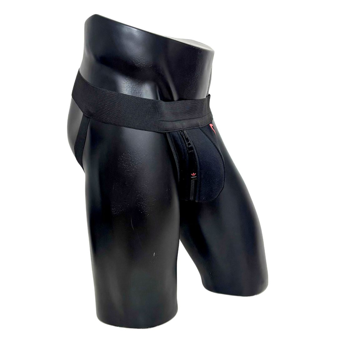 Our totally unique Adidas Jockstrap, handmade from an up-cycled Adidas tracksuit. Besides the authentic fabric from the tracksuit, we finish this customised product with high premium quality elastic bands around the waist and on the side, as well as the pocket with the zipper closure on the side.