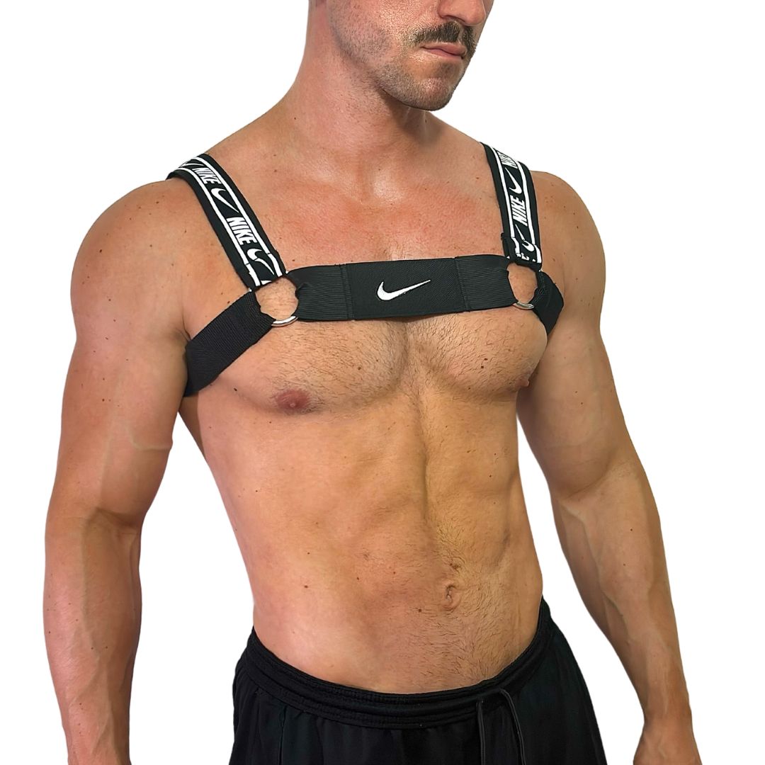 Our totally unique Nike Air Max Harness handmade from up-cycled Nike waist bags. Besides the authentic material from the bags, we finish this customised product with high premium quality elastic bend and titanium rings which provide adaptability. You can wear it in two different ways since it’s reversible.