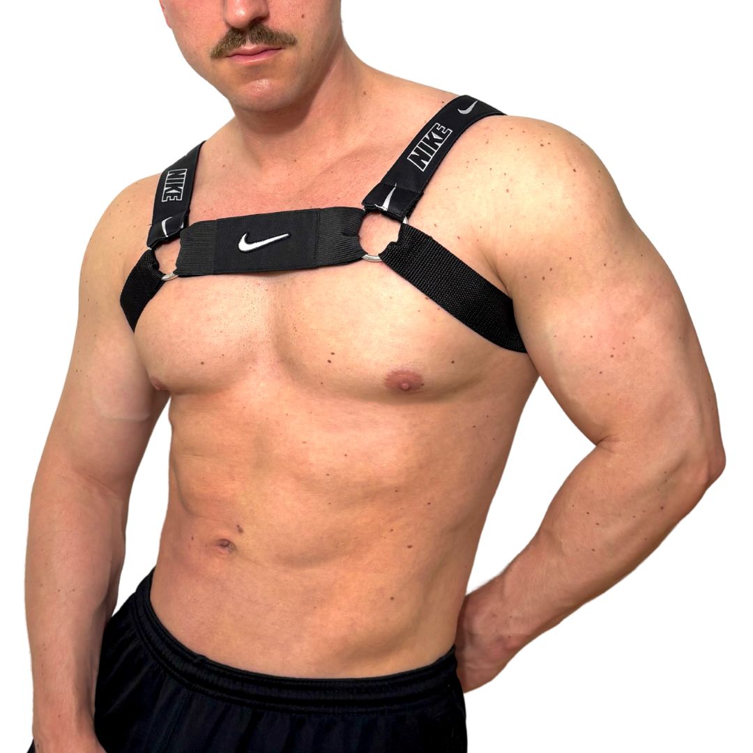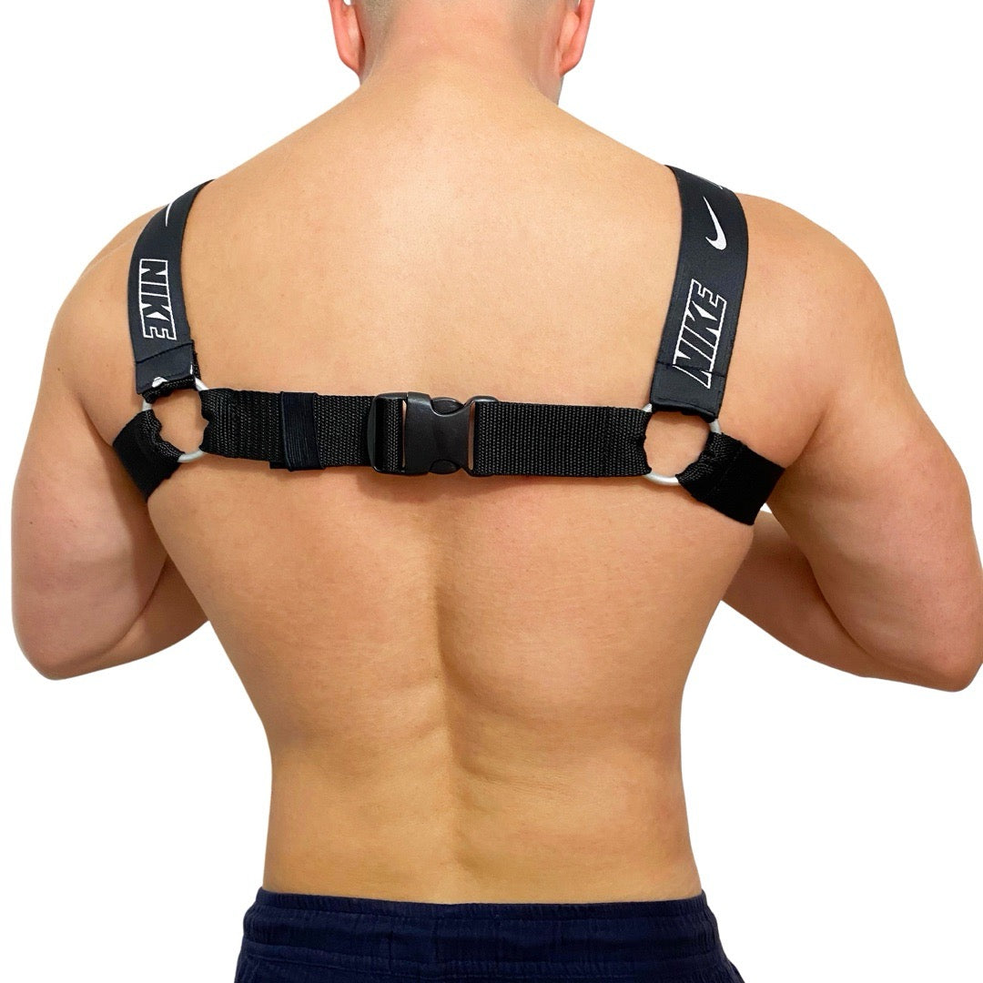 Our totally unique Nike Air Max Harness handmade from up-cycled Nike waist bags. Besides the authentic material from the bags, we finish this customised product with high premium quality elastic bend and titanium rings which provide adaptability.