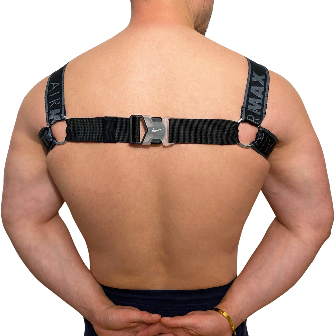 Our totally unique Nike Air Max Harness 2.0 handmade from up-cycled Nike waist bags. Besides the authentic material from the bags, we finish this customised product with high premium quality elastic bend and titanium rings which provide adaptability. You can wear it in two different ways since it’s reversible.