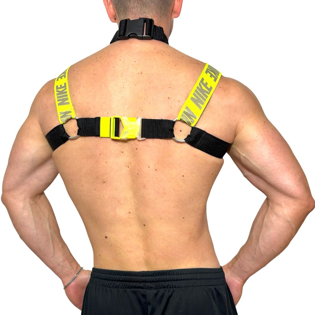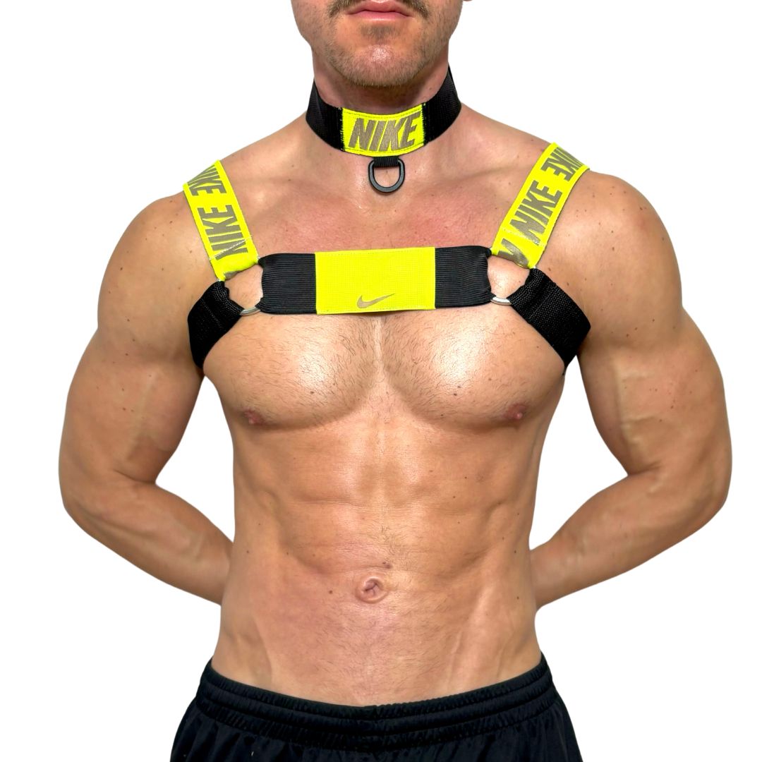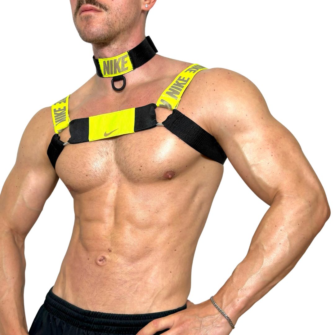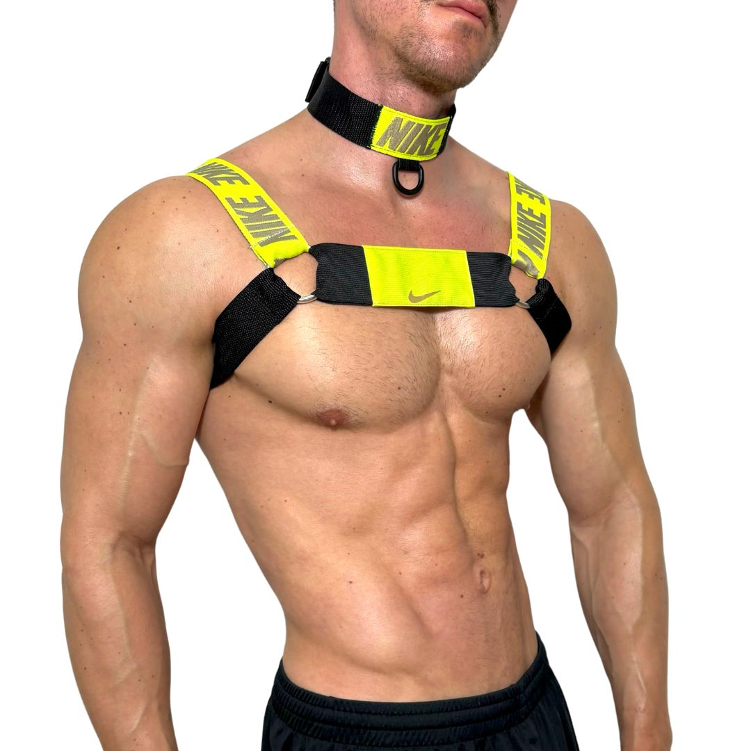 Our totally unique Nike Air Max Sport Neon Green/Gray Harness and Choker are handmade from up-cycled Nike waist bags. Besides the authentic material from the bags, we finish this customised product with high premium quality elastic bend and titanium rings which provide adaptability.