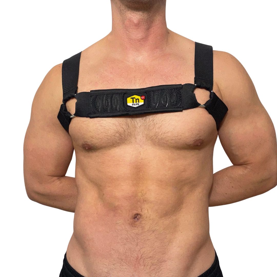 Our totally unique Nike Air Max Tn Harness handmade from up-cycled Air Max Tn sneakers and tracksuit. Besides the authentic material from the sneakers, we finish this customised product with high premium quality elastic bend and titanium rings which provide adaptability.