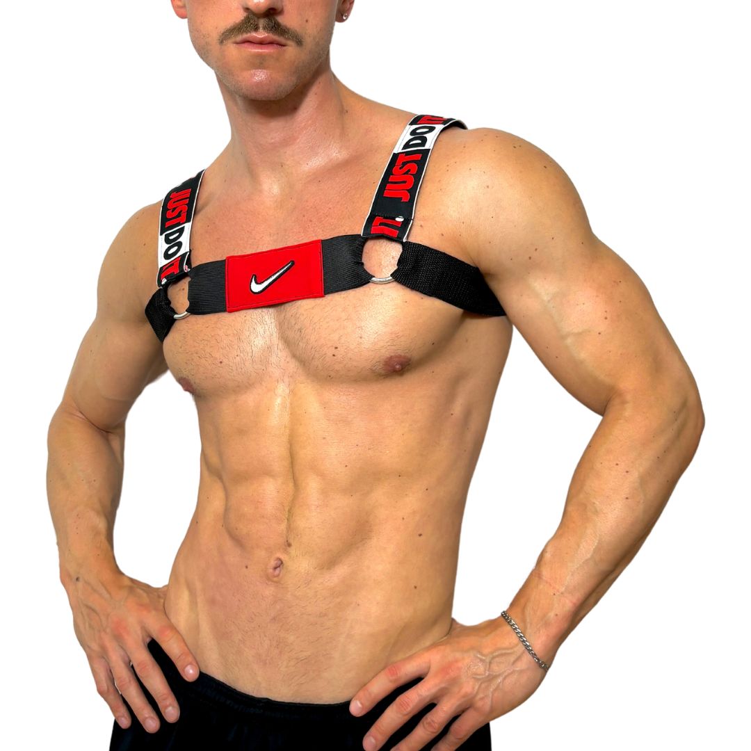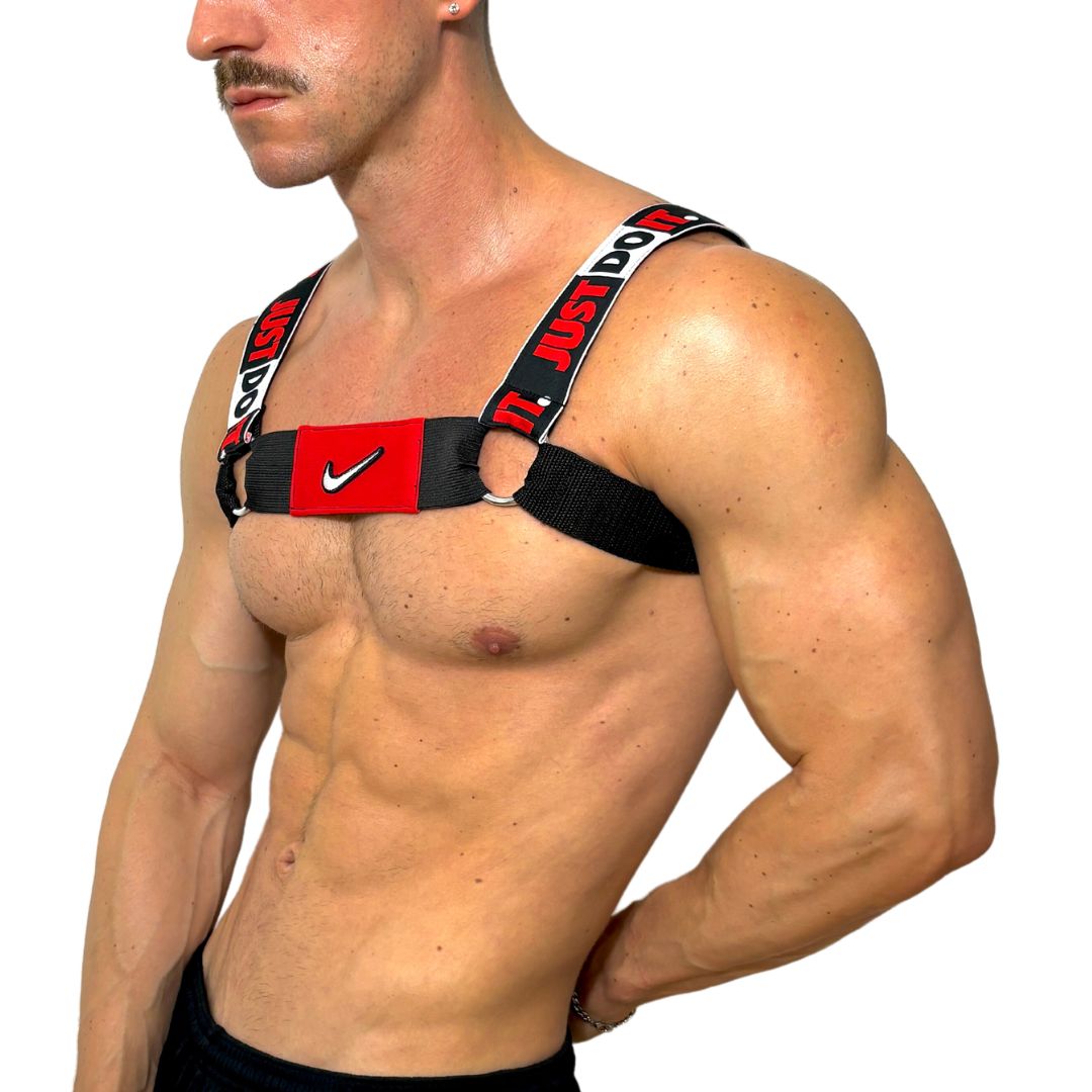 Our totally unique Nike Just Do It Harness handmade from up-cycled Nike waist bags. Besides the authentic material from the bags, we finish this customised product with high premium quality elastic bend and titanium rings which provide adaptability.