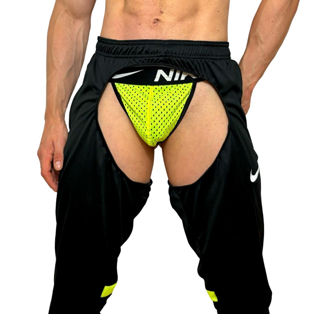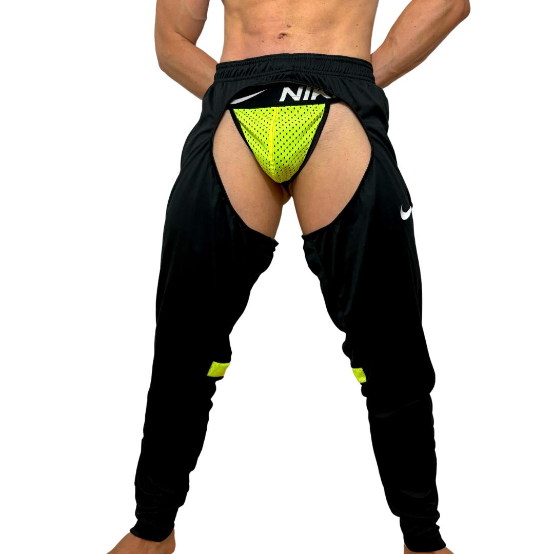 These unique Nike Sport Black/Neon Green Chaps are made from the up-cycled Nike Tracksuit.