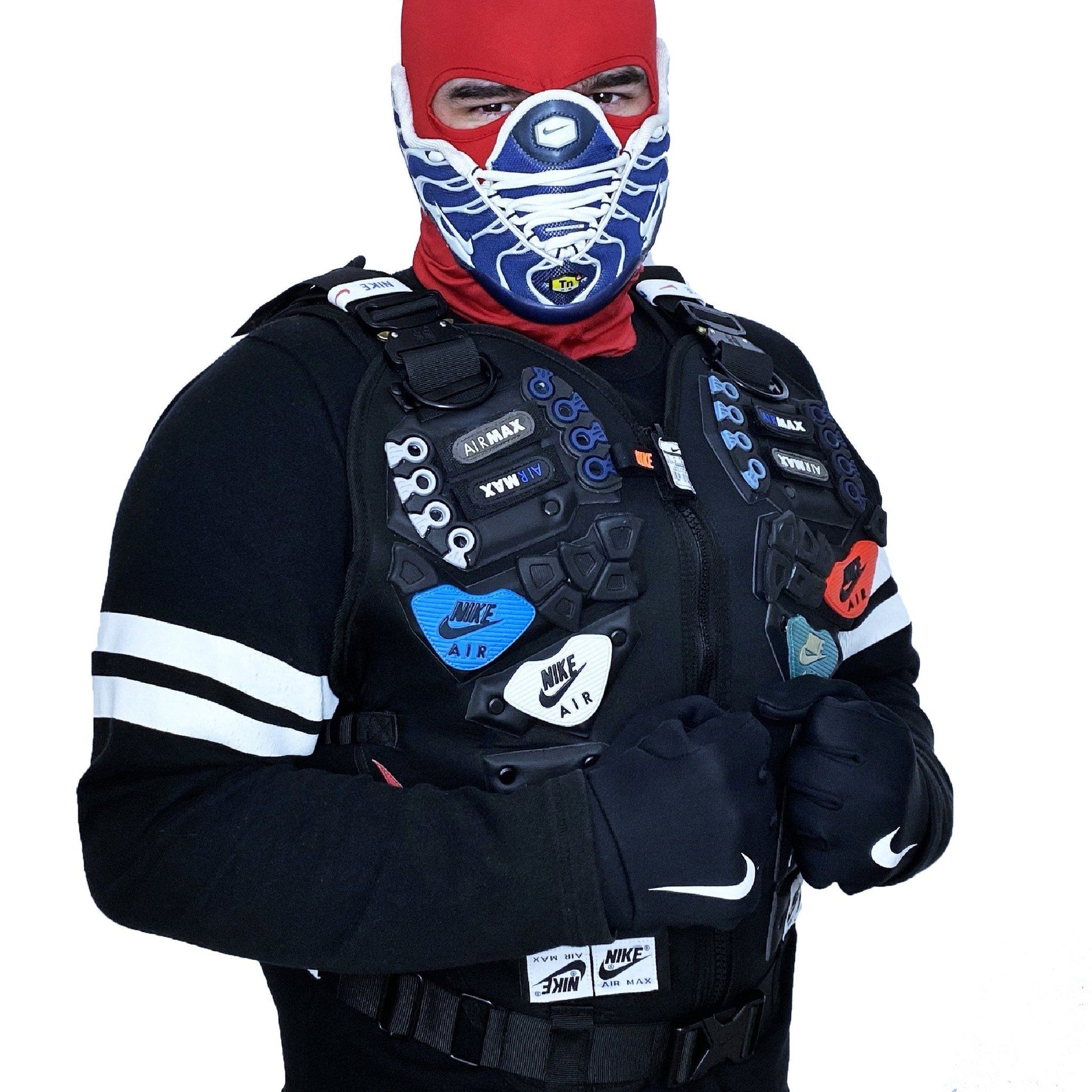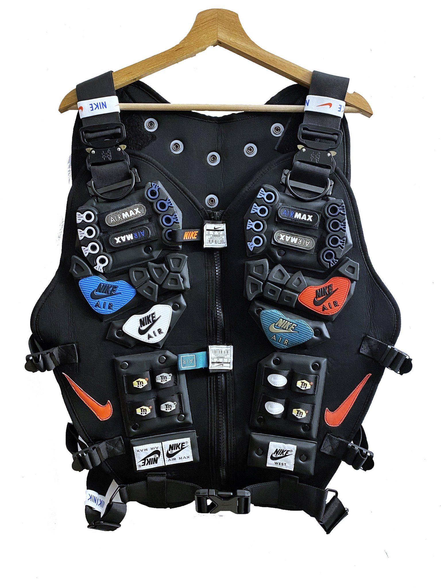 AirMax Armour is a unique hand-made vest embellished with Nike details from more than 30 different AirMax sneakers and 10 AirMax models (Air Max 1, Air Max 1 West, Air Max 90, Air Max 94, Air Max 95, Air Max 97, Air Max Tuned, Air Max Tn Mercurial, Air Max 270 and Vapormax)