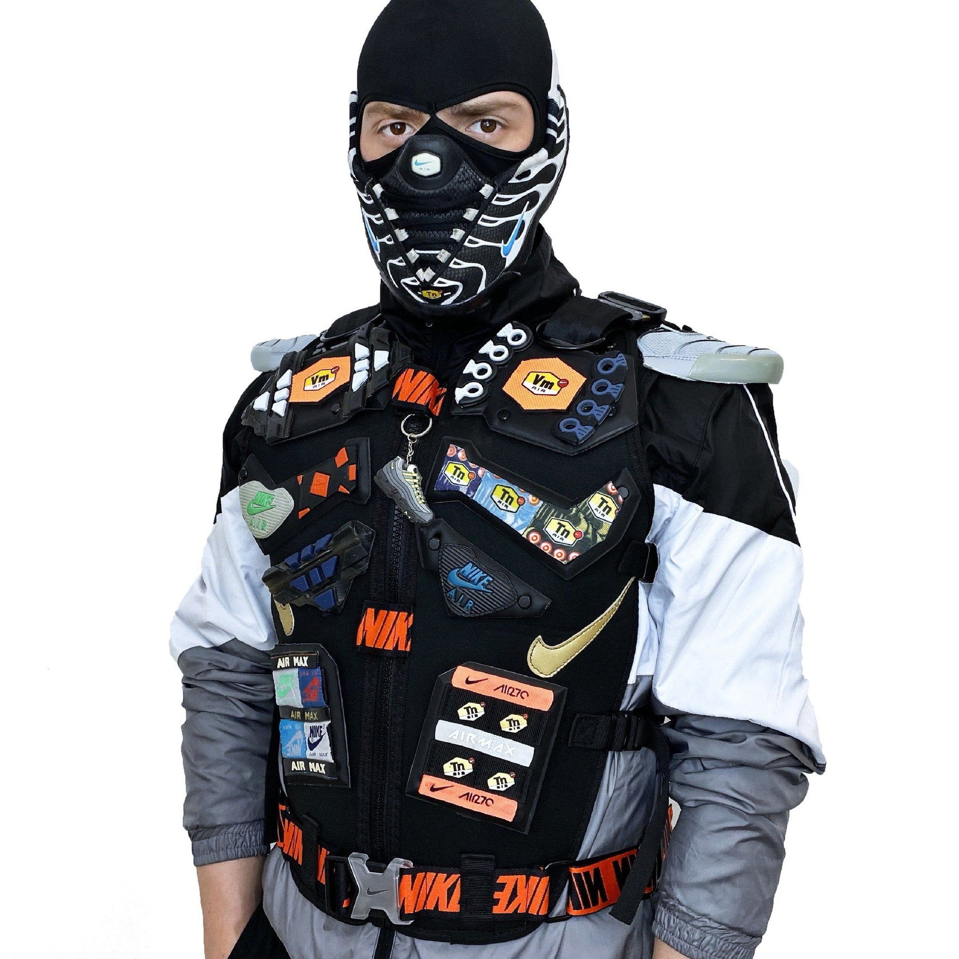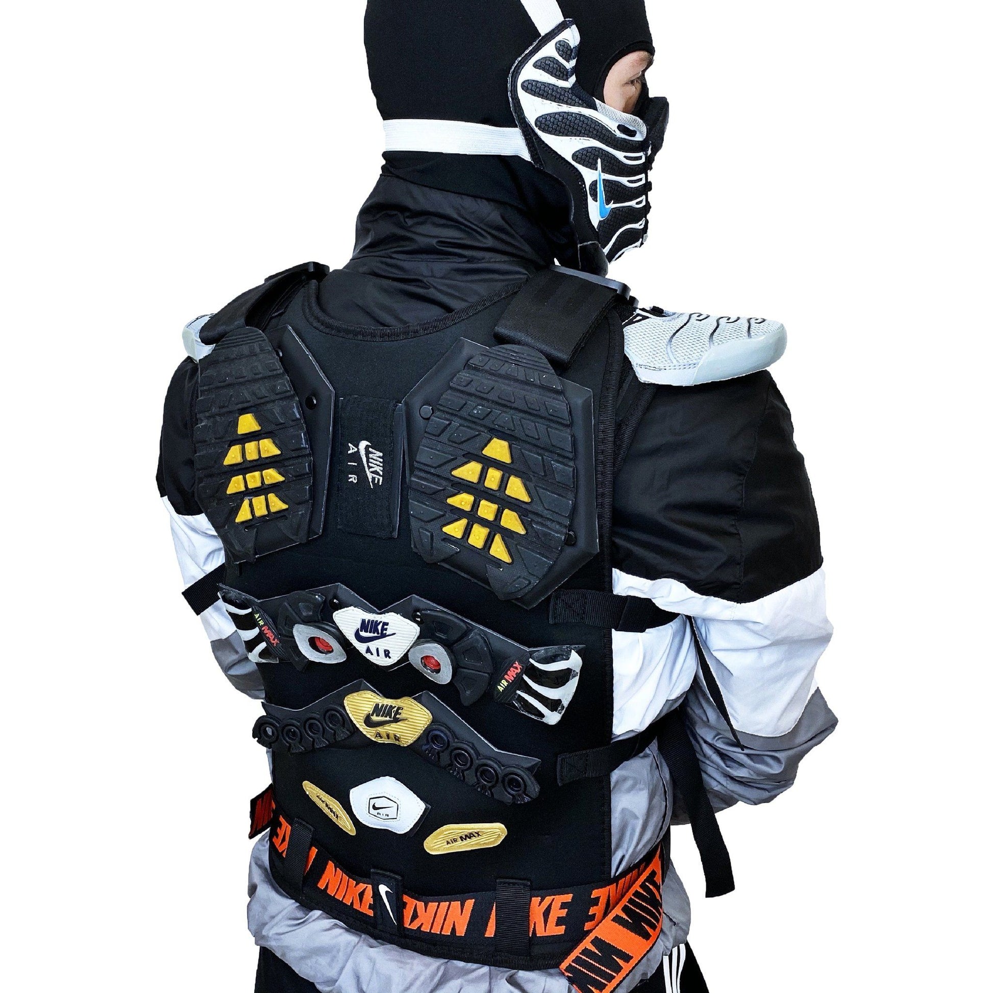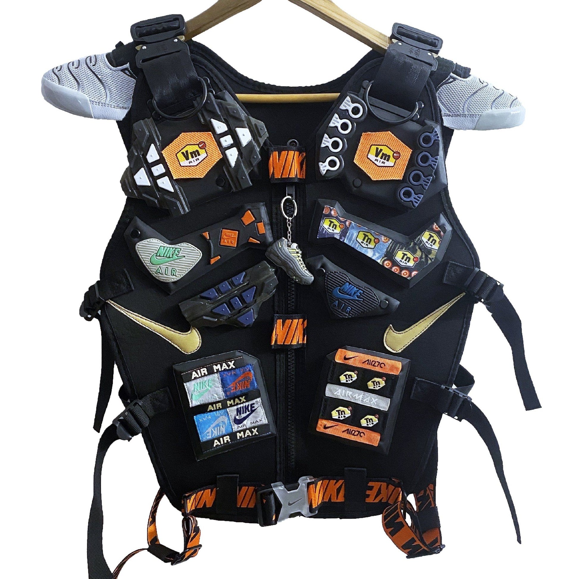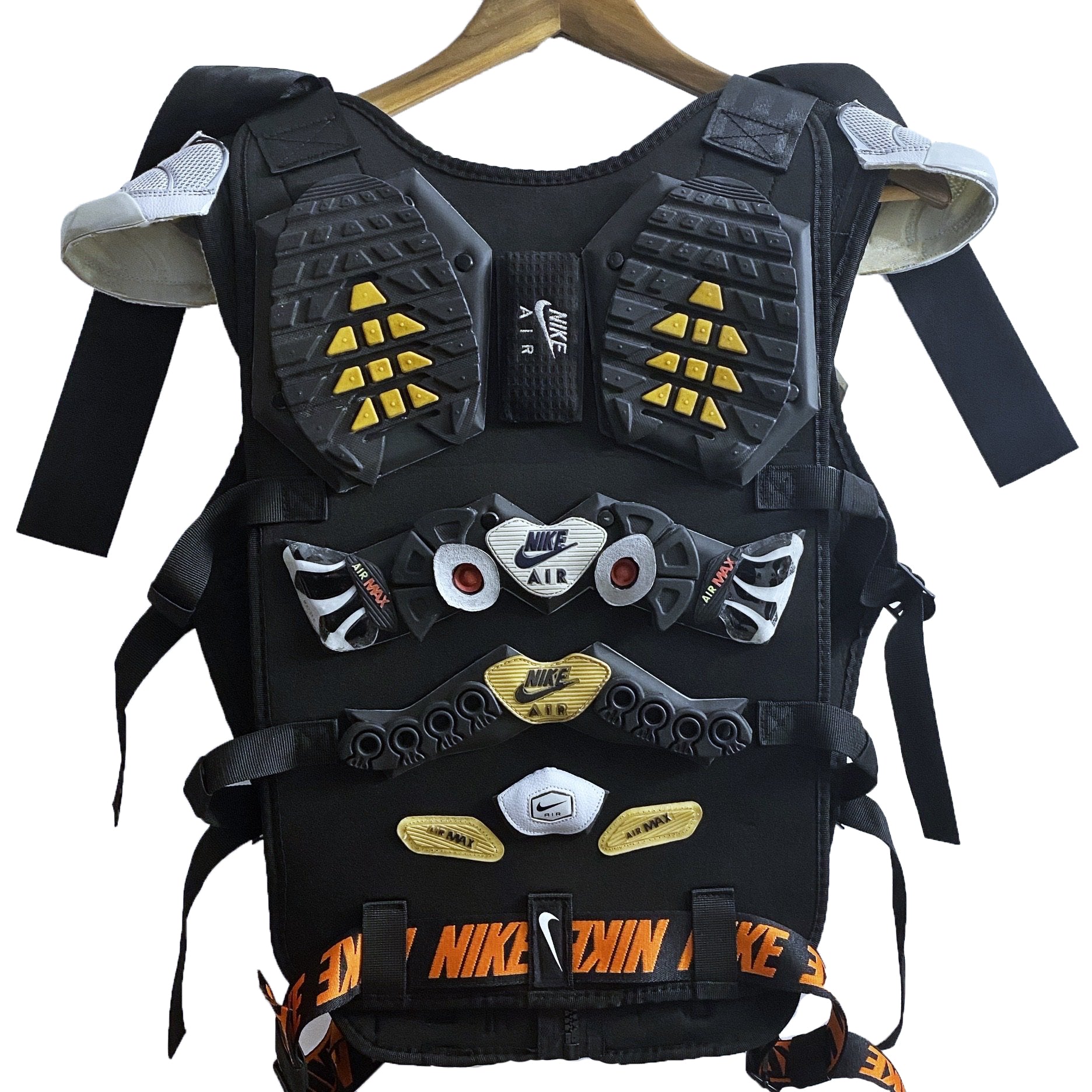 AirMax Armour is a unique hand-made vest embellished with Nike-details from more than 30 different AirMax sneakers, 10 AirMax models (Air Max 1, Air Max 90, Air Max 95, Air Max 97, Air Max Tuned, Air Max BW Classic, Air Max 270, Nike Shox and Vapormax) and one Air Max bum bag.