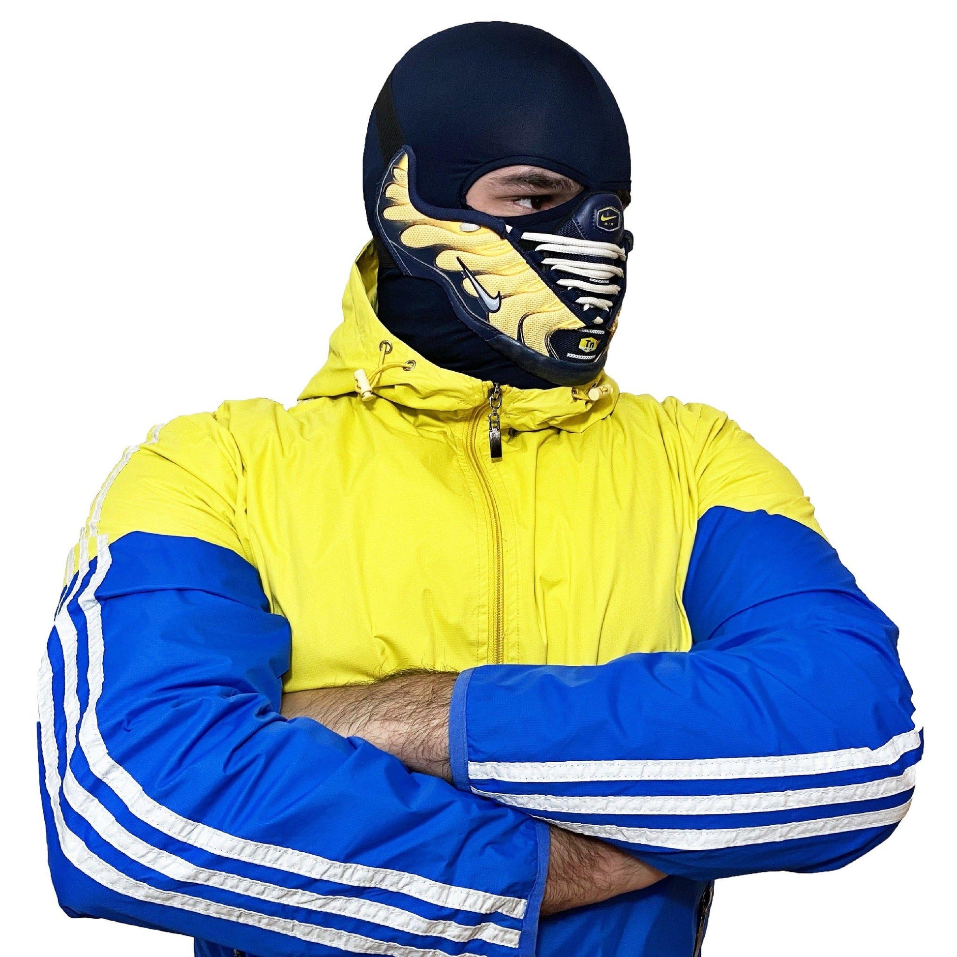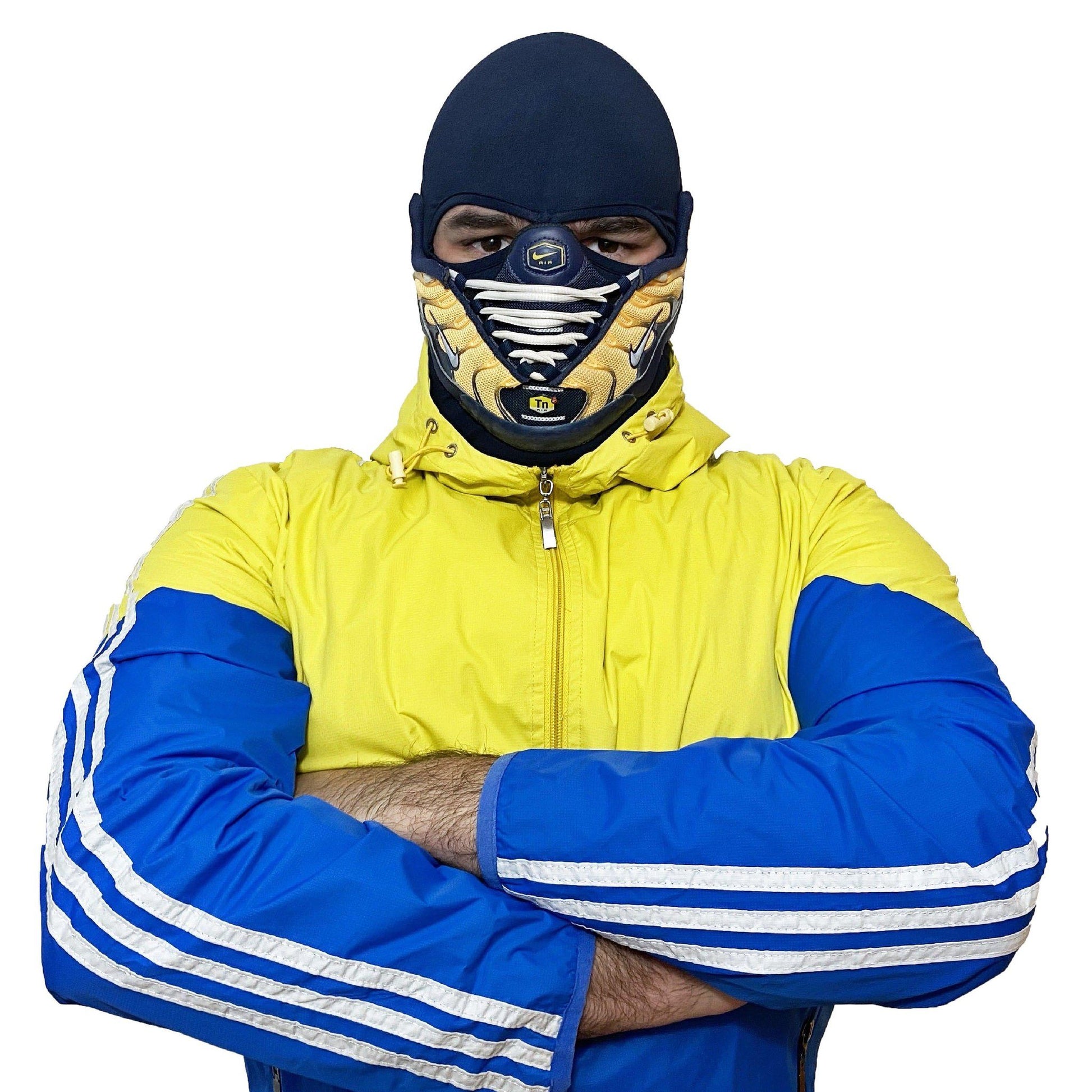 This AirMax Mask is made to be seen. If you want to grab everyone’s attention, especially to stand out among other sneakerheads, this unique Air Max Tn mask, handmade from authentic Nike sneakers is exactly what you need.