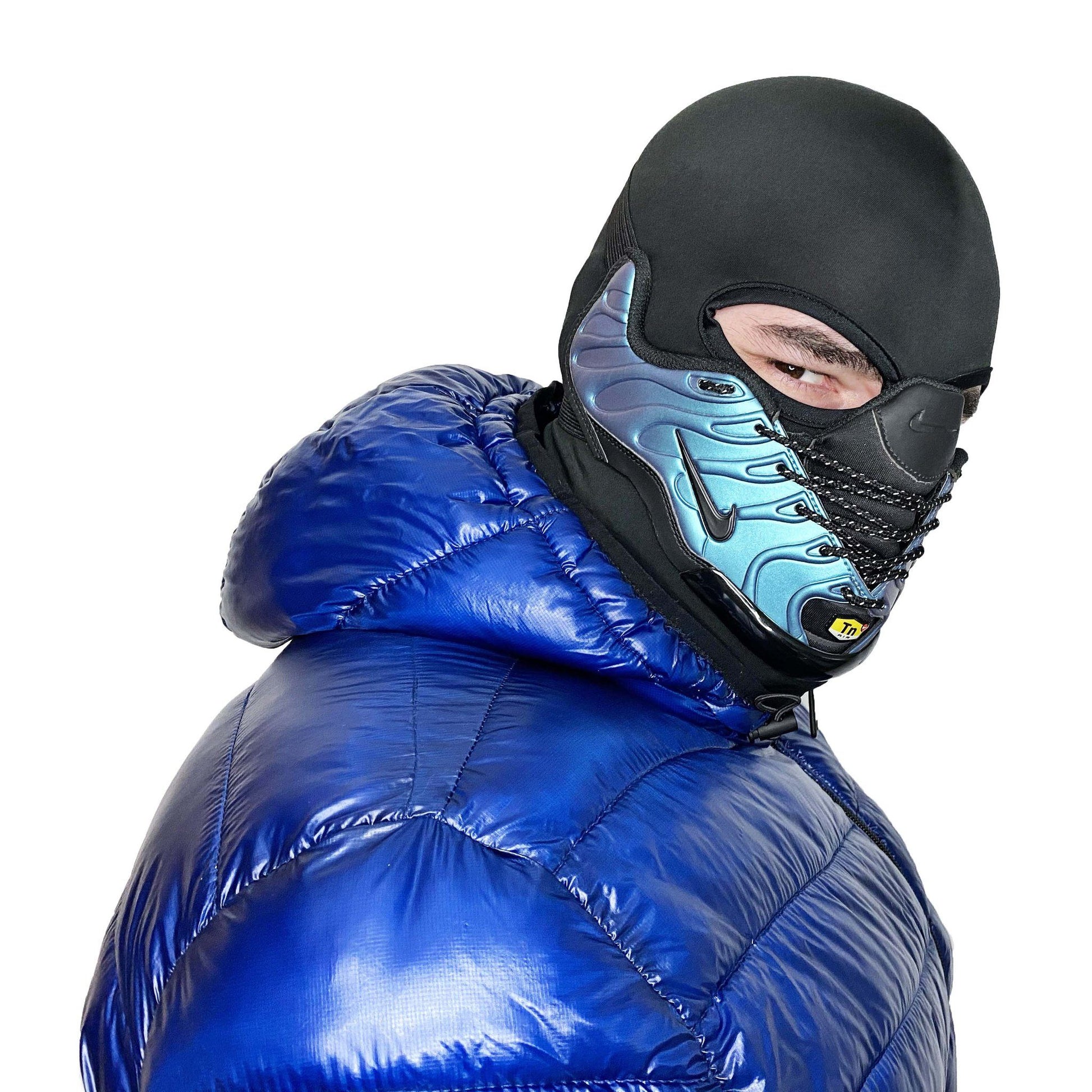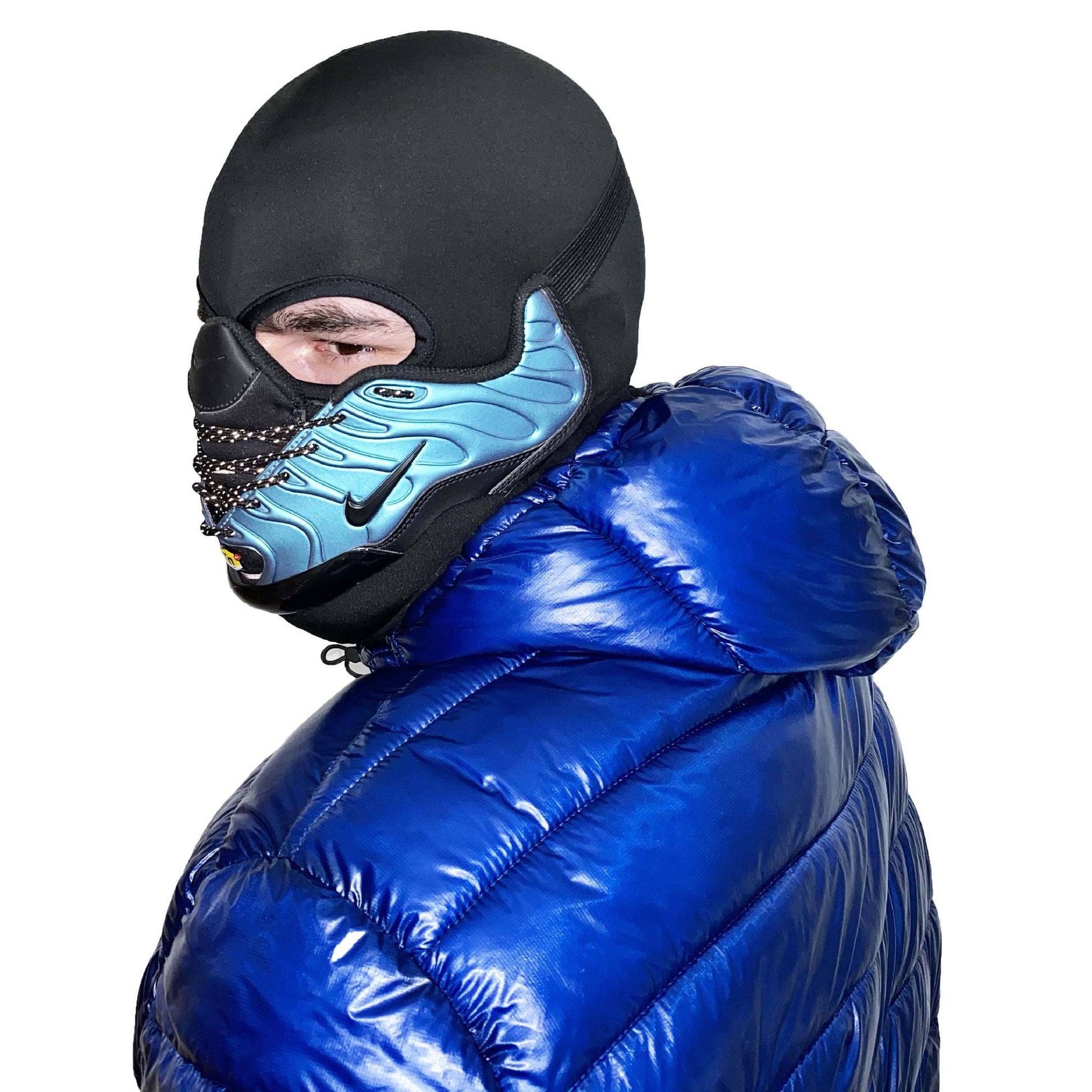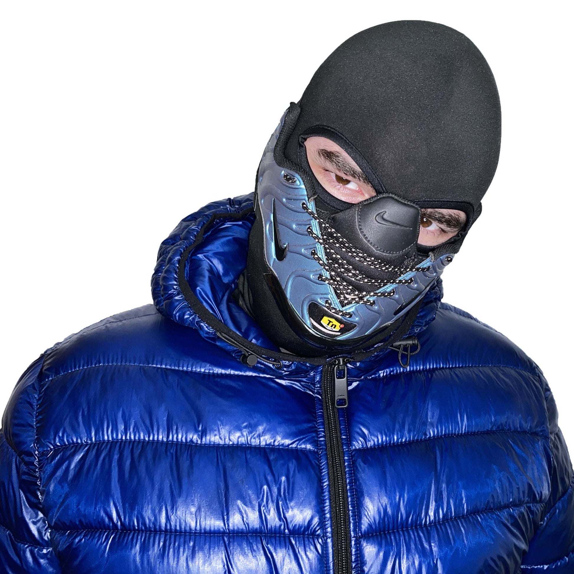Our totally unique Air Max Tn mask, handmade from a used, up-cycled, vintage pair of original AirMax Tn sneakers. Besides the authentic material from the sneakers, we finish this customised product with high premium quality elastic bands which provide comfort and adaptability. The mask can be worn with or without a balaclava underneath. Balaclava is not included in the price.