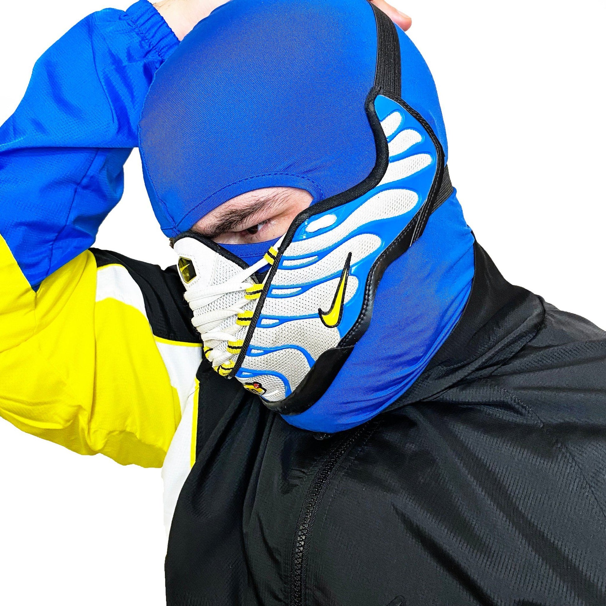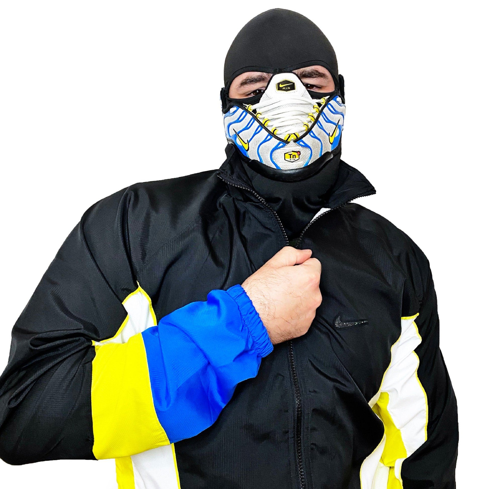 This AirMax Mask is made to be seen. If you want to grab everyone’s attention, especially to stand out among other sneakerheads, this unique Air Max Tn mask, handmade from authentic Nike sneakers is exactly what you need.
