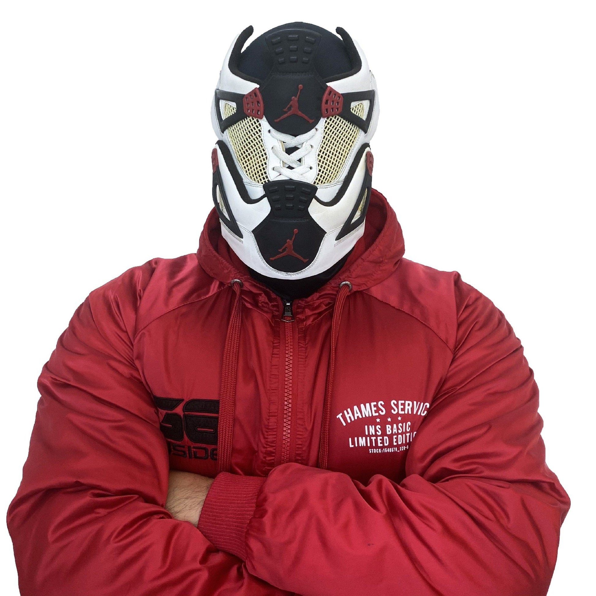 This Nike Jordan 4 Retro Mask is made to be seen. If you want to grab everyone’s attention, especially to stand out among other sneakerheads, this unique Nike Jordan mask, handmade from authentic Nike Jordan sneakers is exactly what you need.