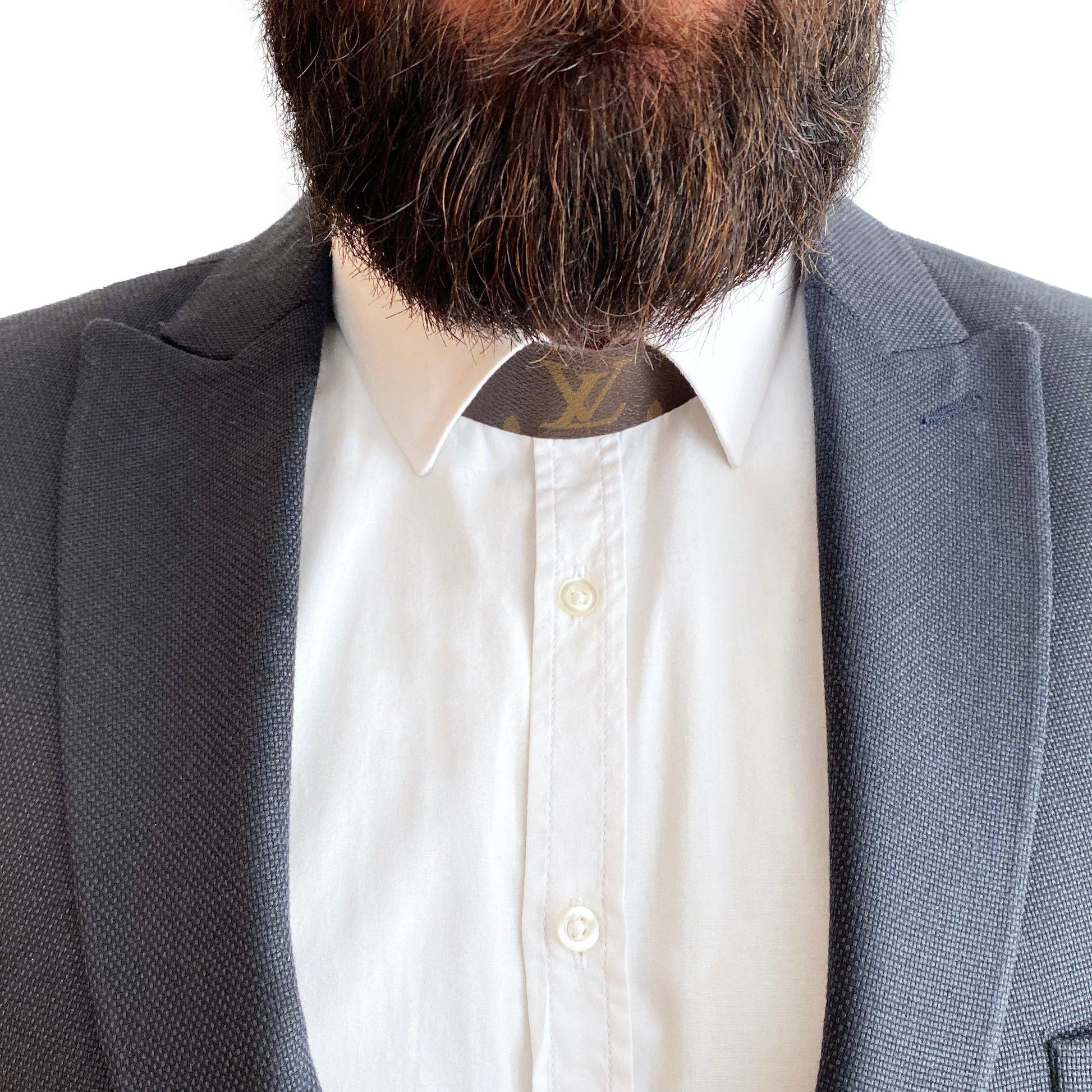 This unique LV Collar is inspired by clerical collars worn by catholic priests and it is handmade from original Louis Vuitton Leather and up-cycled from an original LV bag.