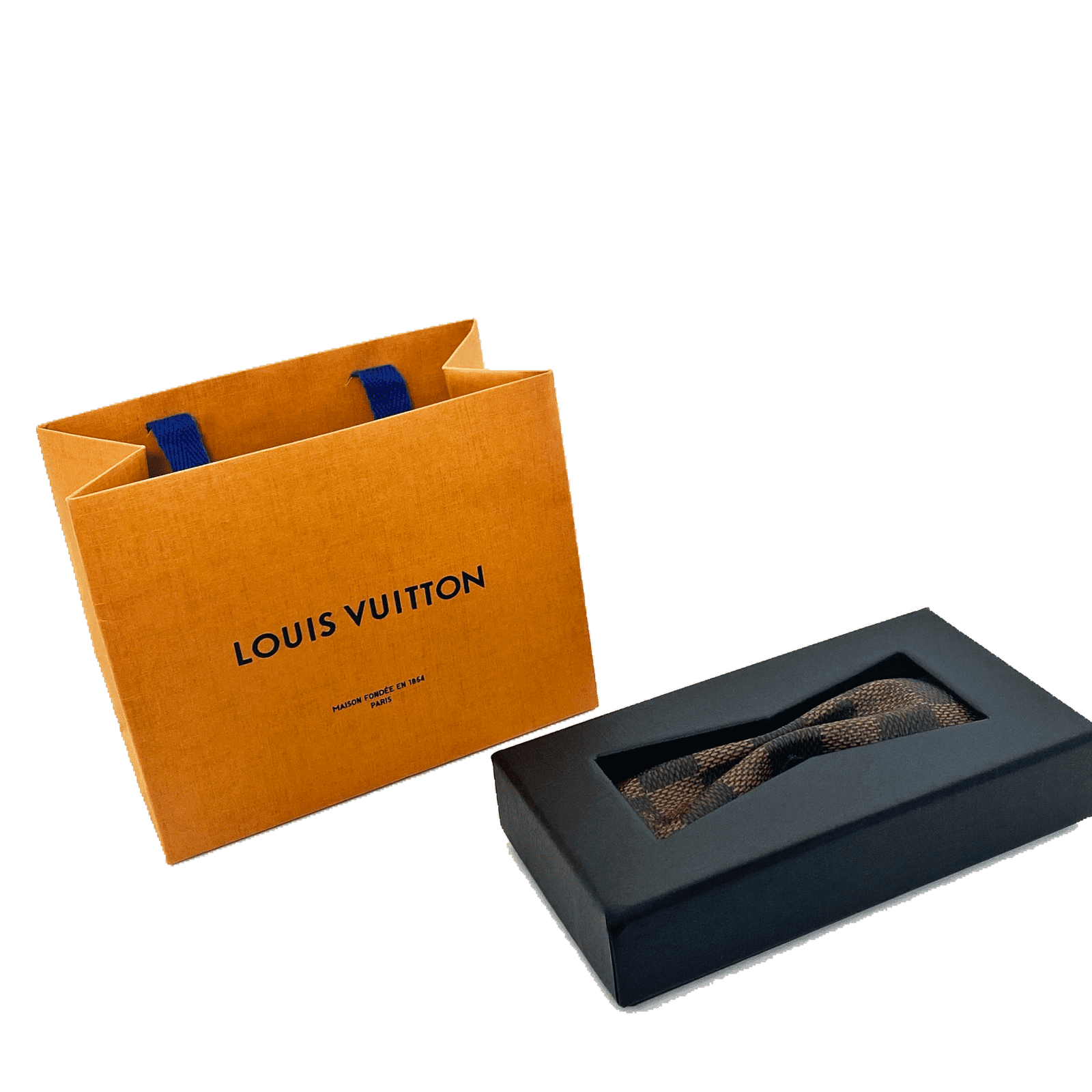 This unique LV bow tie is handmade from original Louis Vuitton Leather and up-cycled into a beautiful bow tie that reinterprets Louis Vuitton's iconic Damier pattern in a daring and exclusive way.