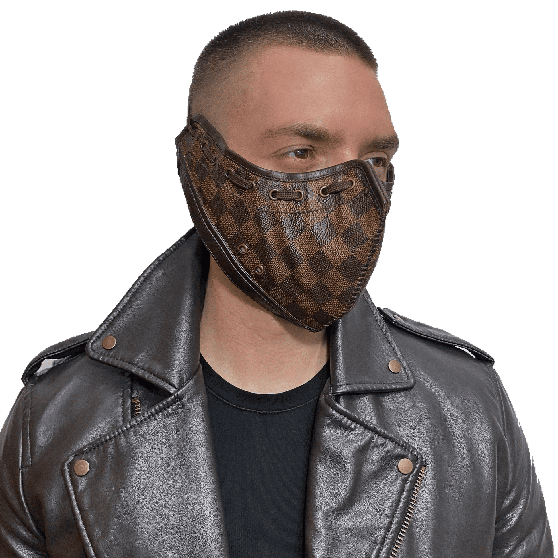 Our totally unique Louis Vuitton mask is handmade from used, up-cycled, vintage pair of original LV sneaker boots. Besides the authentic 100% leather from the LV boots, we finish this customised product with high premium quality elastic bands which provide comfort and adaptability.