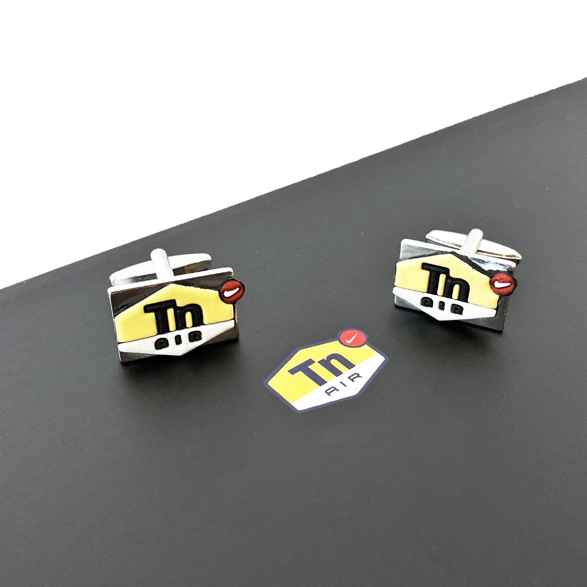 These unique Tn Cufflinks are up-cycled and handmade from logos of the original Air Max Tuned sneakers.
